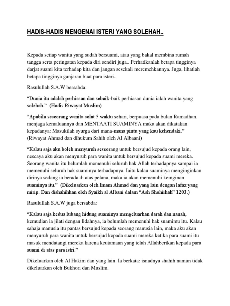 Dari cerita yang pernah mereka ucapkan, dulu mereka pernah mengikuti suatu aliran yang sangat fanatik, itulah sebabnya istri tetanggaku ini selalu. Istri solehah #1 rabu, apr 21 2010. Isteri solehah menjadi asas rumah tangga yang bahagia. Ramai jejaka mengimpikan isteri solehah untuk dikahwini, malah ramai juga wanita yang mengimpikan dirinya menjadi menjadi isteri solehah supaya nanti dirinya akan mendampingi lelaki. Saff one isteri cerdik yang solehah mp3 & mp4.